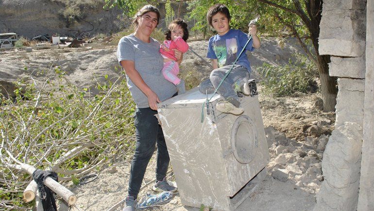 La historia de Lucas conmueve por donde se la mire. Hace poco tiempo había terminado de ampliar su casa. Hace 15 años que está en ese lugar. Todo el arbolado que tenía hoy yace en el suelo. Al igual que una heladera que esta caída muy cerca del cañadón. Un lavarropas apenas servirá como un elemento de juegos para sus hijos. Lucas enfrentó la situación como todos, con sorpresa y desesperación. Lo primero fue rescatar a su familia. Los gritos de alerta de sus vecinos que venían bajando desde el cerro lo pusieron atento y con inusitada destreza logró poner a resguardo a su esposa Cintia Britos y a todos sus hijos en el punto más alto que tenía cerca. Desde allí también vio como sus bienes y sus esfuerzos se iban aguas abajo.