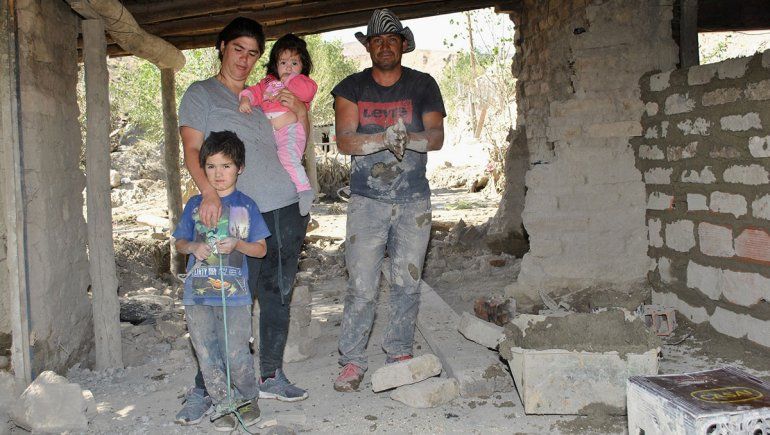 Con esas ganas de seguir adelante envidiables, Lucas está decidido empezar de nuevo lo más pronto posible y puso manos a la obra. Así es que metió sus manos al barro, hizo una mezcla y con la compañía del solidario vecino Horacio Oses comenzaron a pegar adobes para recuperar una pared y poder darle de nuevo cobijo a su familia.