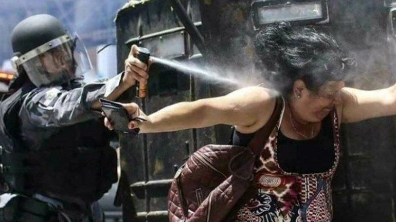 La tercera muestra a un uniformado disparando gas pimienta en la cara de una mujer, pero la imagen fue tomada en Río de Janeiro en 2016 por un fotógrafo de la agencia EFE, durante manifestaciones de empleados públicos.