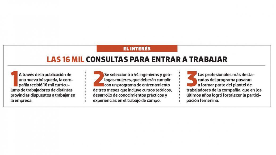 La experta aclaró que las profesionales llegaron al programa a través de un cuidado proceso de selección, en el que tuvieron que filtrar un total de 16 mil currículums provenientes de distintas provincias del país. Aunque el primer filtro sorteó solo a las que eran mujeres, con un nivel de inglés avanzado y con un título de grado en ingeniería o geología, luego se desarrolló un proceso de entrevistas para constatar que las trabajadoras estuvieran dispuestas a enfrentar el trabajo de campo. “Llevamos adelante un proceso de selección muy claro y preciso, por lo que las profesionales saben de antemano cuáles son las experiencias que van a enfrentar durante el entrenamiento”, aclaró.