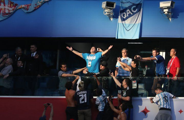 En medio de los festejos y desde el palco, Diego lo vivió con mucha euforia y con una imagen épica en donde el único rayo de sol que ingresó al estadio lo iluminó.