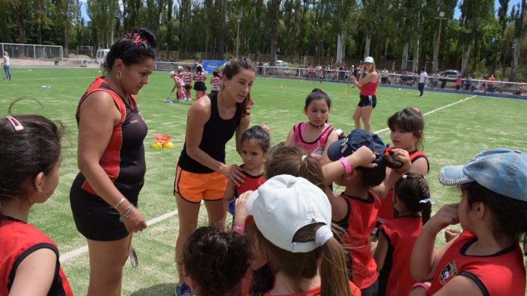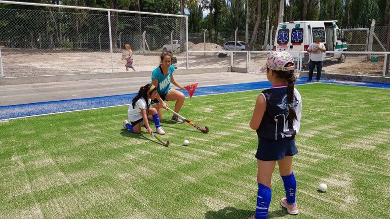 Siete integrantes de la selección nacional de hockey femenino brindaron una clínica deportiva a las divisiones infantiles y juveniles de clubes de Plottier. La actividad se enmarca en la reciente inauguración del complejo deportivo municipal de hockey.