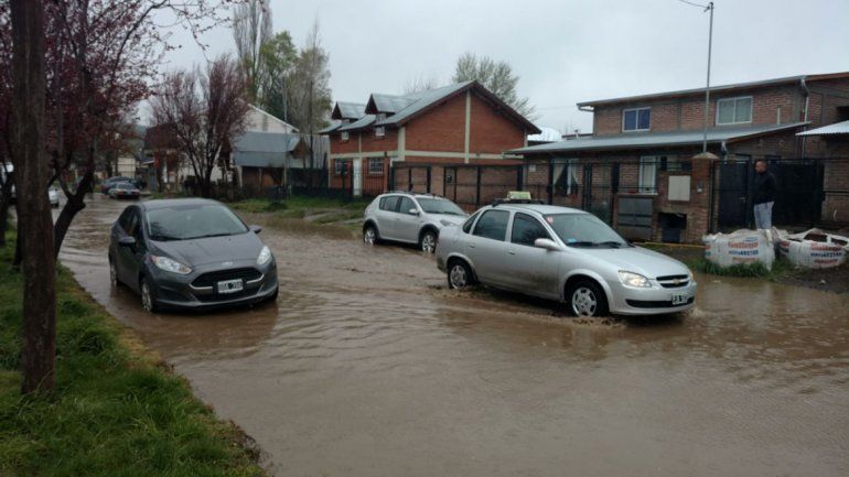 Las lluvias generaron inconvenientes en las calles de Junín de los Andes. Allí, personal de Defensa Civil trabajo en los sectores más afectados, en donde sólo hubo problemas en la circulación ya que el agua no ingresó a las viviendas.