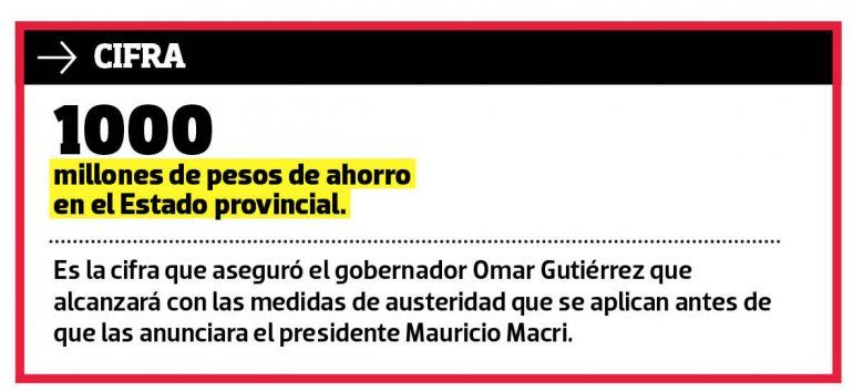 Alrededor de 350 cargos políticos en el gobierno provincial fueron sometidos al ya anunciado plan de ajuste: algunos son funcionarios y se irán a casa sin trabajo, mientras que otros son empleados que volverán a sus puestos originarios en las reparticiones y cobrarán menos sueldo. Esta es la evaluación que hace el gobierno de Omar Gutiérrez en la nueva etapa de gestión, con otro gabinete y en el contexto del plan de austeridad propio, que empezó hace un mes, más allá del anuncio que hizo el presidente Mauricio Macri.