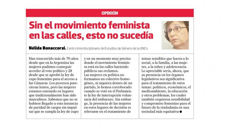 Estas elecciones confirmaron que la ley de cupo ayuda, pero no garantiza por sí sola la igualdad. Marca un piso, que puede tener agujeros. Por eso, dependerá del consenso social que el peso que tienen hoy las mujeres en la actividad política se traslade al recinto de la Legislatura de aquí en adelante.