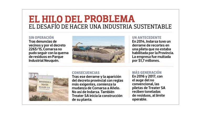 Pero el tema es más complejo, ya que el debate, más allá de los cuestionamientos a las empresas, es qué hacer ante el crecimiento de los recortes, de acuerdo con las declaraciones juradas de las operadoras (ver recuadro). En la provincia de Neuquén hay tres empresas que se llevan casi el 90% del tratamiento de los residuos peligrosos de la industria, que son Treater Neuquén SA, Comarsa (tiene un pasivo de 300.000 metros cúbicos en Parque Industrial Neuquén y una planta en Añelo) e Indarsa (opera en Neuquén con pocos volúmenes y en Añelo). El principal tratador de estos recortes es, por lejos, Treater Neuquén SA, por lo que cualquier paralización de las operaciones, según coinciden en la industria, agravaría aún más la situación de los residuos petroleros.
