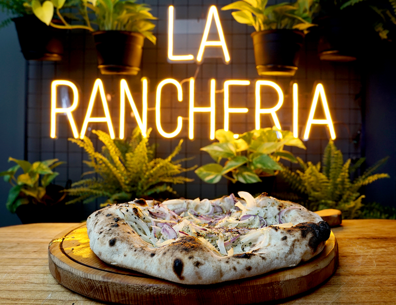 La Ranchería abrirá sus puertas el lunes 23 de mayo para ofrecer una variedad de pizzas clásicas, al estilo napolitano, y una gama de autor con masas "de fermentación lenta" y una particular combinación de ingredientes. Desde la conocida "Tranka Marga" (con salsa de tomate, mozzarella, albahaca y oliva) hasta la "Mortal" (mozzarella, crema de arvejas, mortadela, burrata, pistachos, nueces y oliva), pasando por la "Big Pappa" (bechamel, mozzarella, papines asados, cebolla morada, tomillo y oliva), la "Gulera" (bechamel, mozzarella, panceta, papas selladas, romero y oliva), "Del Templo" (salsa de tomate, mozzarella, pollo desmenuzado, queso brie, morrones asados y oliva) y la "Diosanto", con crema de curry, mozzarella, peras asadas, queso roquefort y oliva.
