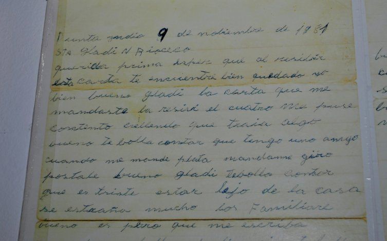 En las mismas siempre se mantiene optimista, pero en una de ellas fechada el 9 de noviembre de 1981 expresa sus sentimientos de estar lejos de su terruño y de los suyos. “…Bueno Gladis, te voy a contar que es triste estar lejos de la casa, se extraña mucho los familiares. Bueno, espero que me escribas, cuando me vaya de licencia te voy a contar como se pasa la vida de marina”, escribió el Moncho. En otras de las cartas (30 de enero de 1982) les manda tranquilidad a su abuelo Segundo, el hombre que lo supo criar como un padre sin límites. “No se hagan problema por mí, porque yo estoy bien. Bueno Gladys, mandale a decir a papá que yo estoy bien, que no se haga problema”