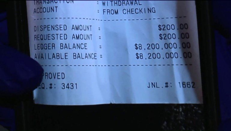 Solo sacó 200 dólares, pero tenía mucho más para retirar. En su cuenta había más de 8 millones de dólares, cuando él se suponía que solo debía recibir 1700. Sin creer lo que estaba viendo, corrió su tarjeta nuevamente pero decía lo mismo. Se quedó analizando lo que pasaba un rato y pensó: "no hay forma en el mundo de que esto pueda estar sucediendo".