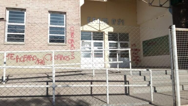 Según relató la joven de cuarto año, el pasado jueves le robaron su teléfono celular que tenía en la mochila. Al ver que la institución no realizó las denuncias correspondientes, la joven escribió con aerosol el frente de la escuela: "Me robaron acá, chorros".