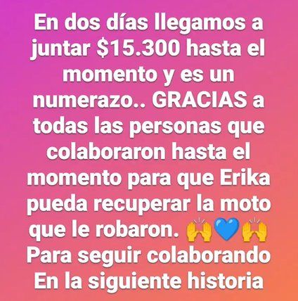 Un grupo de vecinos realizan una colecta para comprarle una moto a una joven que trabaja en el edificio y dos delincuentes le robaron. Según especificaron, la víctima utilizaba el vehículo para trasladarse a las diferentes casas en las que trabaja y para llevar a su pequeña hija a la escuela.