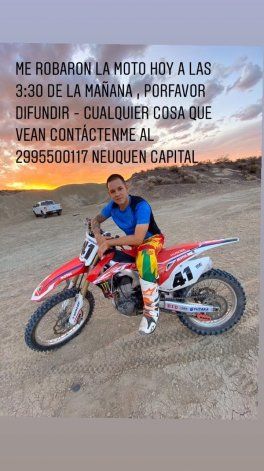 Un joven piloto neuquino denunció que esta madrugada le robaron la moto de su casa en el barrio Rincón de Emilio y no podrá participar del campeonato regional de motocross que arranca la semana que viene en San Martín de los Andes.