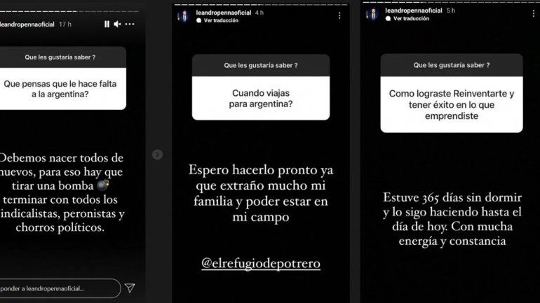 Para concluir, el participante del “Bailando por un sueño” lanzó: "Compro en Perú y en México, estoy mandando palta a Europa y el mes que viene estoy (sic) por mandar palta a Estados Unidos". Con sus declaraciones Penna dejó ver que está muy bien en el vecino país, donde las cosas funcionan mejor y más claras que en Argentina que cambia constantemente las reglas de juego y es muy difícil emprender.