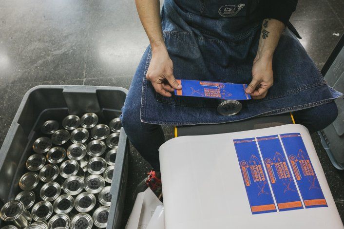 “Las máquinas lo único que hacen es esterilizar la comida que está dentro de las latas. La clave del producto es tu manejo del autoclave y eso no te lo enseña nadie.Nosotros al ser cocineros tenemos una sensibilidad mayor que quizás un técnico en alimentos que maneja una fábrica” cuenta Cristóbal mientras nos lleva a un sitio donde están etiquetando latas con una paleta de colores fabulosa.