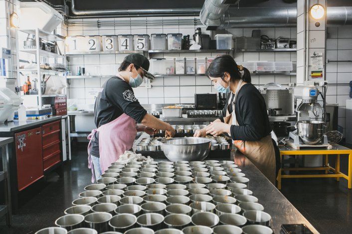 El taller es un salón de baile, brillante, impoluto. Lele y Mecha están involucrados de cero. Cocinando, produciendo y buscando siempre.