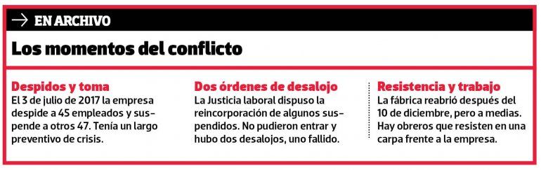 Para el Gobierno y la empresa, el conflicto se está cerrando, aunque no para los obreros que están frente a la empresa en una carpa. Son alrededor de 20 personas.