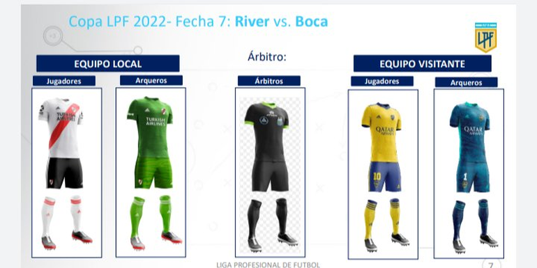 El pedido de los dirigentes de Boca se hizo a través de la Liga Profesional, que aceptó la petición, y por ese motivo el Xeneize utilizará la camiseta amarilla con vivos azules para medirse con River, que saldrá con la tradicional blanca con la banda roja.