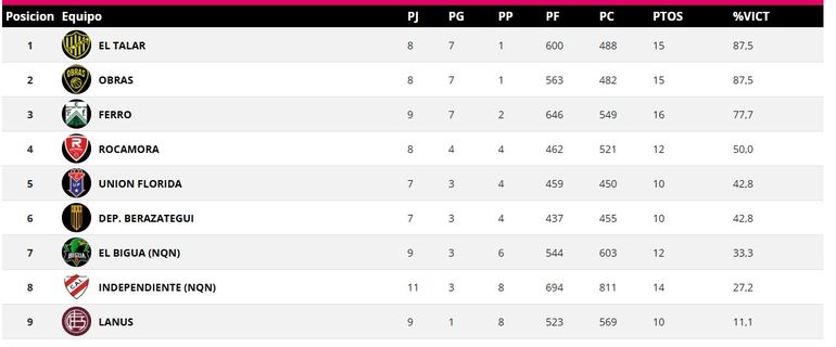 Con estos resultados, quedó último Lanús en el fondo de la tabla, mientras que tanto las "verdes" como las "rojas" suman tres éxitos cada una, pero Biguá tiene dos partidos menos.