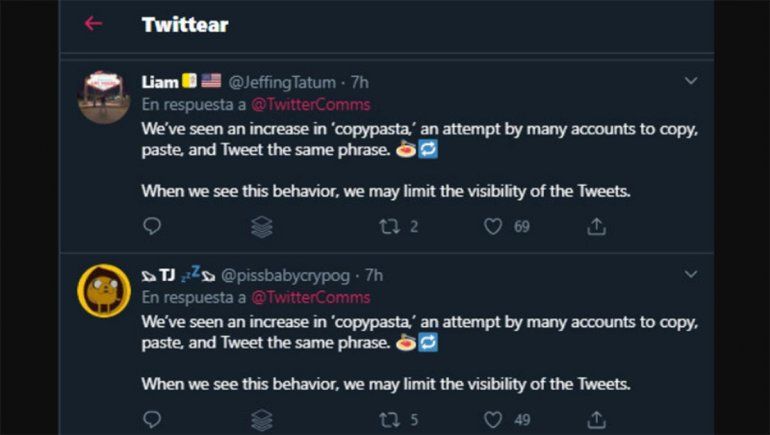 Ante este masivo comportamiento decidieron que podrían limitar la visibilidad de esos tweets. Sin embargo, desde la red social no detallan la forma en que esto se va a llevar a cabo, es decir, que tweets se limitan y que tweets no, y las respuestas al mismo tweet que lo anuncia pone a prueba la idea.