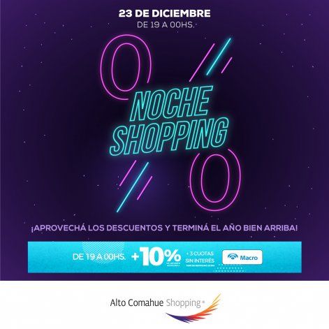El principal centro comercial de la Patagonia vuelve a repetir su tradicional "Noche Shopping" en la que mantendrá abiertas sus puertas hasta la madrugada.