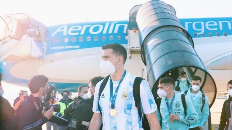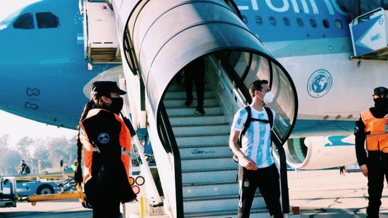 El equipo capitaneado por Lionel Messi arribó en el vuelo 1971 de Aerolíneas Argentinas, que a las 8:43 tocó la pista de aterrizaje del Aeropuerto Internacional Ministro Pistarini, donde recibió una bienvenida muy especial.
