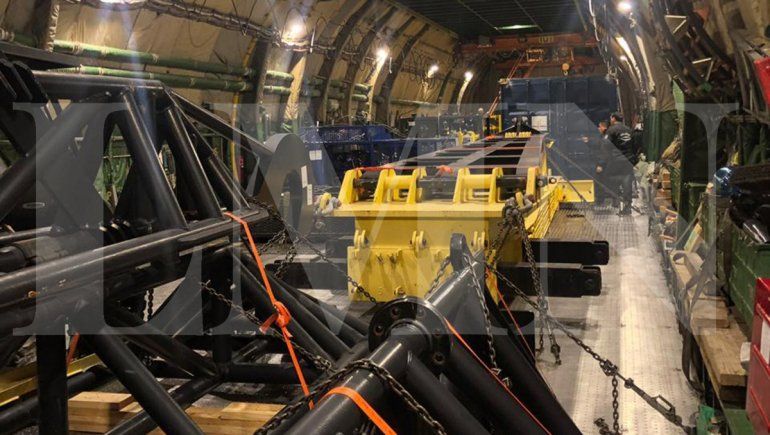 El avión contenía 56 mil kilos de bultos cerrados y vehículos, entre ellos un camión especial con una lanza para maniobrar en la boca del pozo siniestrado.