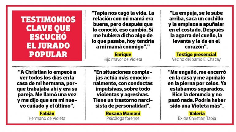 “Pido perdón a la familia y a sus hijos”, enunció Tapia sin perder la calma, y recordó que conoció a Violeta como una persona alegre, tal como la describieron los testigos.