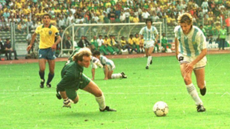 "El Diego te gambeteó, el Cani te vacunó, estás llorando desde Italia hasta hoy”, cantan, desafiantes en territorio ajeno, los hinchas argentinos. Esa jugada pasó a la historia, aquel gol se hizo leyenda. En casi todas las encuestas sobre el tanto más celebrado por los hinchas argentinos aparece en los primeros puestos. Fue el último gran duelo entre ambos en los mundiales. El sufrido y milagroso triunfo por los octavos de final de Italia 90, el que valió el pasaje a cuartos y la eliminación del eterno rival que nos peloteó todo el partido.