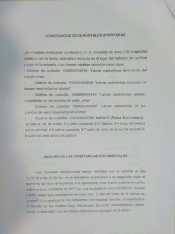 Los especialistas establecieron que la fecha de muerte se produjo “aproximadamente 23 días, por lo que el deceso habría ocurrido el 22 de febrero de 2018 o en las primeras horas del día posterior”.