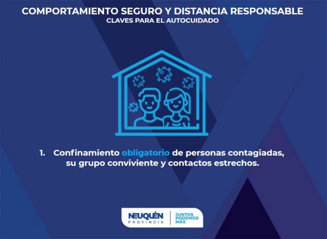 Como primera medida, se exigirá el confinamiento obligatorio para todos los contagiados y su grupo de convivientes o contactos estrechos. Gutiérrez afirmó que esta medida no se está cumpliendo en la provincia y aclaró que analizan la posibilidad de que los neuquinos denuncien a quienes rompan la normativa