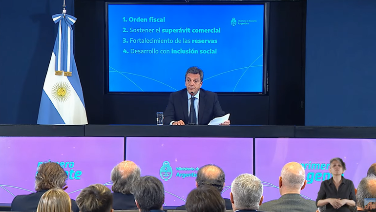 Luego de jurar como nuevo ministro de Economía, Desarrollo, Agricultura, Ganadería y Pesca, este miércoles por la noche Sergio Massa brindó su primera conferencia desde el Palacio de Hacienda en la que anunció las primeras medidas de su gestión.