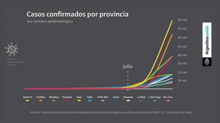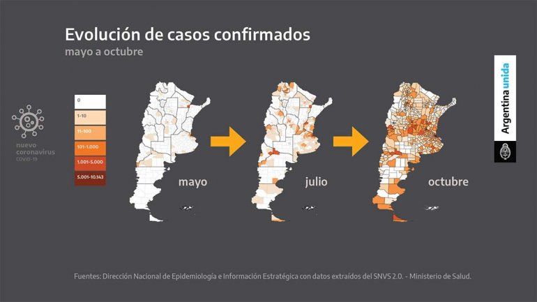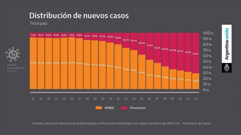 Tras el anuncio, el Gobierno informó que a partir del próximo lunes Misiones, Corrientes, Formosa, Entre Ríos, Catamarca, Jujuy, La Pampa y San Juan, los distritos con el nivel de casos de Covid-19 más controlado, pasarán a la etapa de "distanciamiento social".