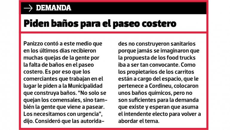 Al ser consultada por la relevancia de este espacio público, trazó un paralelismo con la Costanera de la Ciudad Autónoma de Buenos Aires, un lugar de similares características con una amplia oferta de comida al paso.