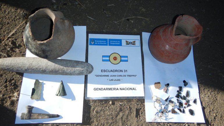 Entre las 50 piezas se hallaron dos vasijas prácticamente completas, un sobador (piedra alargada para moler trigo o maíz), piedras de cuarzo, una pipa, fundas de bayoneta, puntas de flechas y chaquiras (pulseras). Faundez dijo que, a unos 50 metros de ese hallazgo, se encontraban restos óseos humanos que la patrulla de Gendarmería no tocó por respeto a las comunidades.
