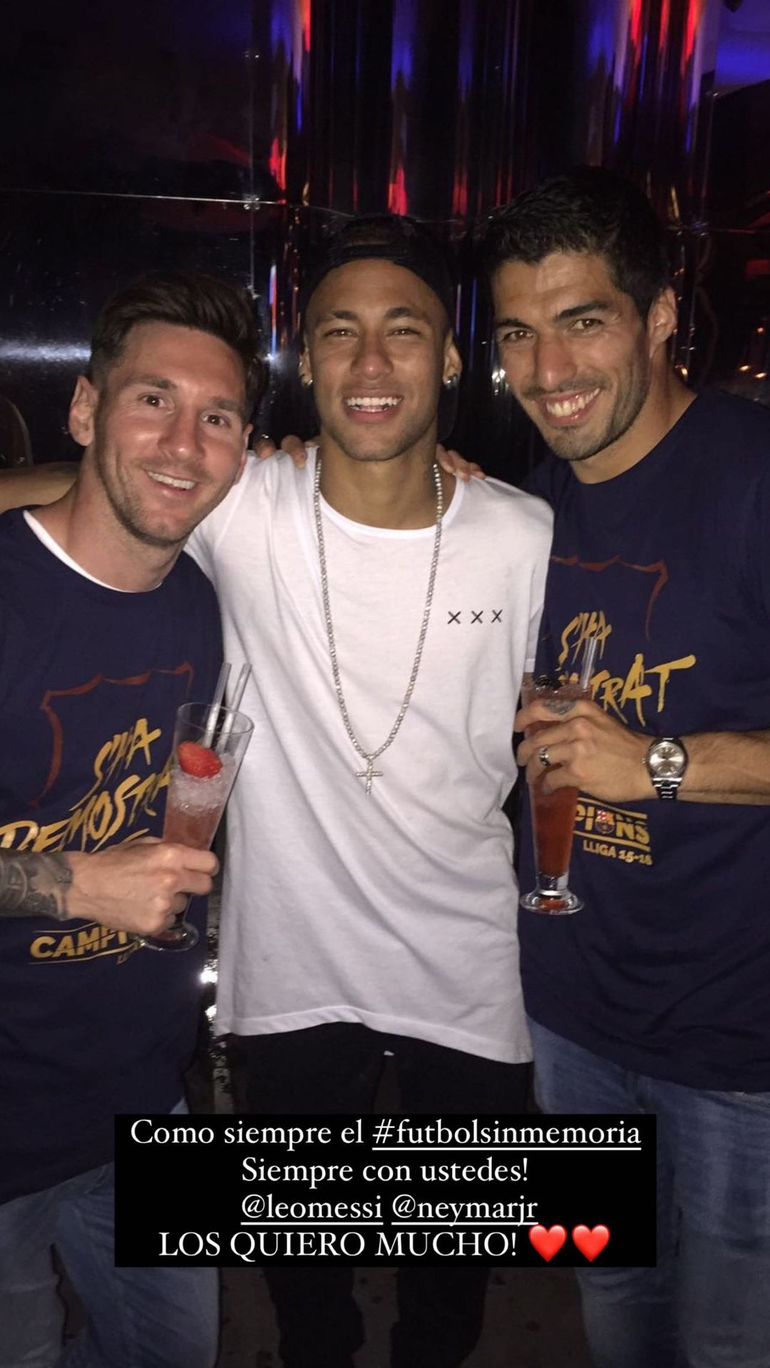 En pleno partido, el delantero uruguayo Luis Suárez, amigo de Messi y Neymar, publicó una historia en Instaram, en la que respaldaba a sus excompañeros en el Barcelona. "Como siempre #elfútbolsinmemoria. Siempre con ustedes. Los quiero mucho", expresó el Pistolero.