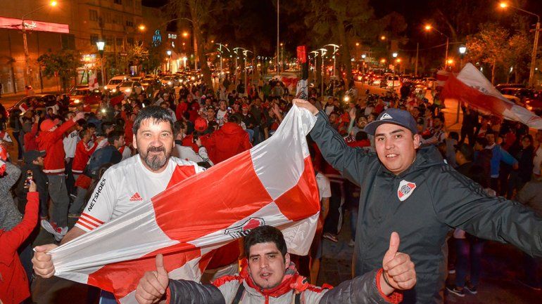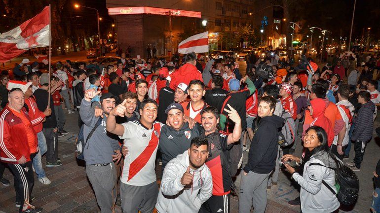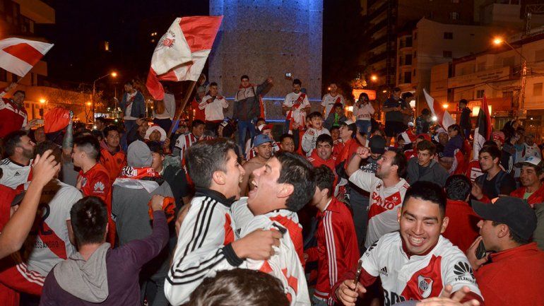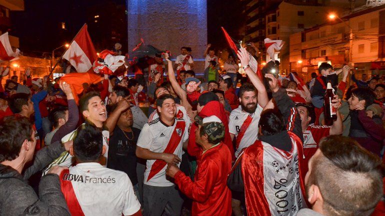 Bocinazos, cánticos y alegría se combinaron en los festejos de los hinchas de River, que apenas terminó el partido se dirigieron al monumento a San Martín.