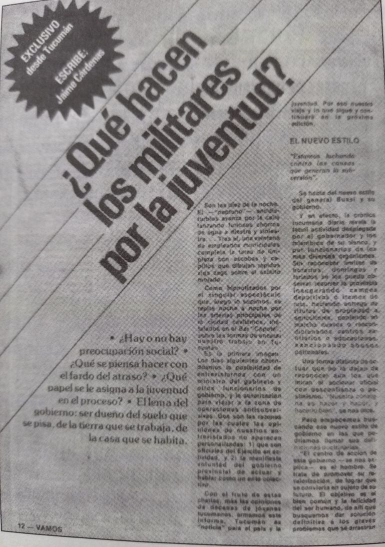 En el número 4 de la revista del 2 de julio de 1976, se escribe sobre “la marcada preocupación” - del gobernador de Tucuman general Bussi - “por los problemas sociales” y destacan “los logros de la administración bussista.”.