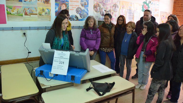 Tras realizar una capacitación, los jóvenes se apostaron en las puertas de las escuelas para despejar dudas o enseñar el método para votar con el sistema electrónico. “Se acercan más que nada las personas mayores que no están tan acostumbradas a usar la tecnología”, indicó Nicolás, uno de los capacitadores de este sistema.