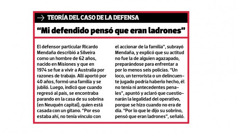 “El ingreso de la Policía fue en horario habilitado constitucionalmente minutos después de las 7, por orden de un juez nacional y replicado por la jueza Mara Suste. De ninguna manera se pudo confundir con un robo, estaban claramente identificados”, afirmó Ruixo y sentenció: “Silveira tuvo la intención de matar y fue el primero en disparar”.