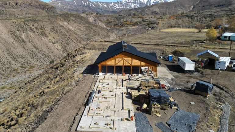 La hostería que el gobierno provincial construye con tecnología de la Corporación Forestal Neuquina (Corfone) en la localidad de Los Miches"se estaría terminando entre mayo y junio", anunció este viernes el gobernador Omar Gutiérrez durante una recorrida por la obra.