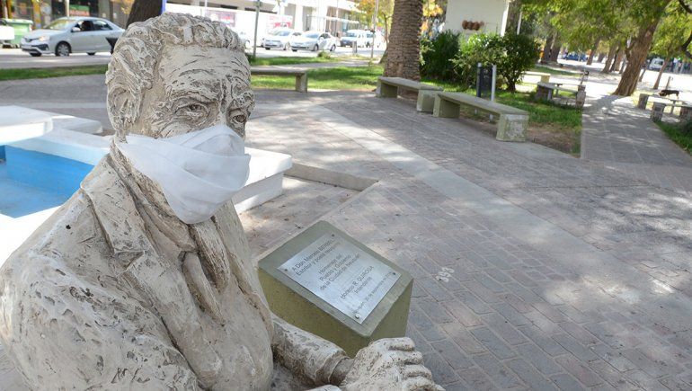 La subsecretaría de Cultura de la ciudad de Neuquén comenzó a taparle la boca a todos los monumentos en el marco provincial de uso obligatorio barbijos para las personas que circulan por la vía pública. "Es una forma también de comunicar y creemos que es una forma creativa de informarlo", aseguró Andrés Zerneri, titular del área.