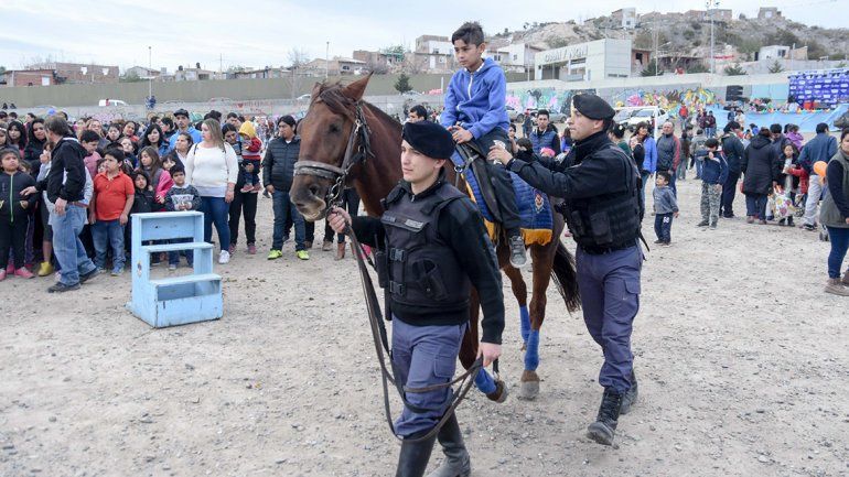 En otro punto del lugar, niñas entre 6 y 7 años jugaba al hockey. En la cancha de al lado, un grupo de pibes se disputaban la pelota en un picadito. Todo en simultáneo y con públicos segmentados que- por ejemplo- se agolpaban para ver la exhibición de perros a cargo de la Policía Montada, que además brindó breves paseos a caballo para los más pequeños.