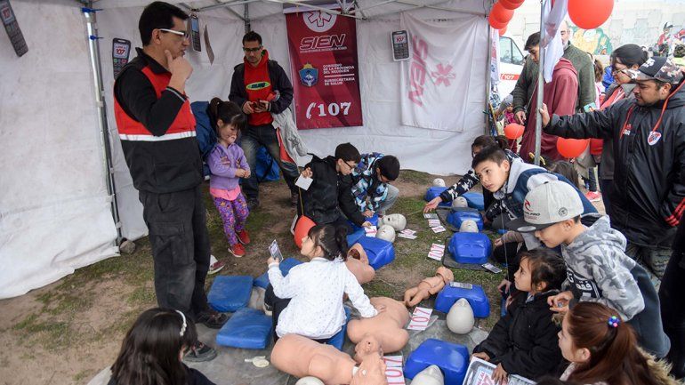 La salud también dijo presente en la jornada a través de profesionales que daban consejos de higiene bucal o prevención de enfermedades a las familias o enseñaban primeros auxilios a los más pequeños en la carpa del Sistema Integrado de Emergencias del Neuquén (SIEN).