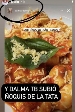 La investigación comenzó cuando Gianinna Maradona fue a ver a Daniel Osvaldo tocar en vivo con su banda, entonces Juariu identificó un guiño que él le habría dedicó a su ¿suegra? Claudia Villafañe. Pícaro, Daniel compartió a través de sus stories de Instagram un tentador plato de ñoquis que parecieran ser los de “La Tata”.