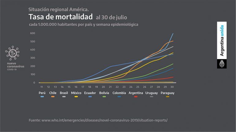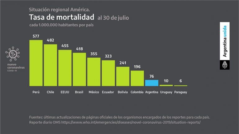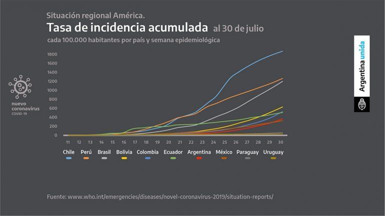 El Presidente mostró algunas cifras y exhibió cuál es la situación del país en comparación con otros países de América Latina en relación a la tasa de mortalidad y la tasa de incidencia acumulada del coronavirus.