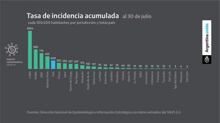 En tanto, también comparó la situación de las distintas provincias de Argentina sobre la tasa de mortalidad y tasa de incidencia cada millón de habitantes. Neuquén y Río Negro se encuentran entre las diez primeras provincias.