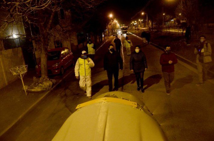 Noche a noche, los equipos de desinfección de la subsecretaría de Limpieza Urbana llegan a los barrios con el único objetivo de recorrerlos y abordarlos en toda su extensión para cumplir con las tareas de limpieza y desinfección en el marco de la emergencia sanitaria.