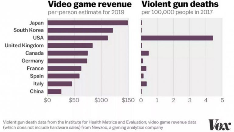 En Estados Unidos mueren mucha más gente, pero no porque existan los videojuegos, sino porque las armas de fuego son legales y fáciles de obtener.