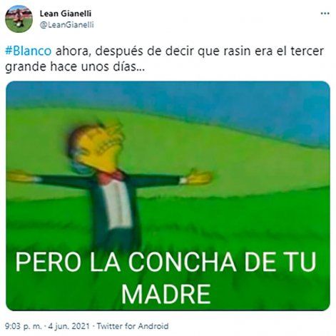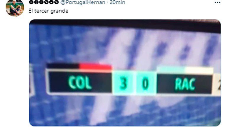 Por el contrario, Racing se convirtió en el centro de todas las burlas. El conjunto dirigido por Juan Antonio Pizzi estuvo muy lejos de sus posibilidades y sufrió una dura derrota que le impidió sumar un nuevo trofeo a sus vitrinas. Lejos de lamentarse por haber quedado afuera del torneo en la instancia previa ante los santafesinos, los simpatizantes de Independiente también se sumaron a la ola de chistes contra la Academia haciendo alusión al mote de “tercer grande” con el que se autodenominan los de camiseta celeste y blanca.