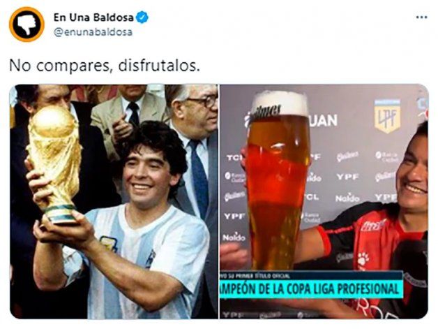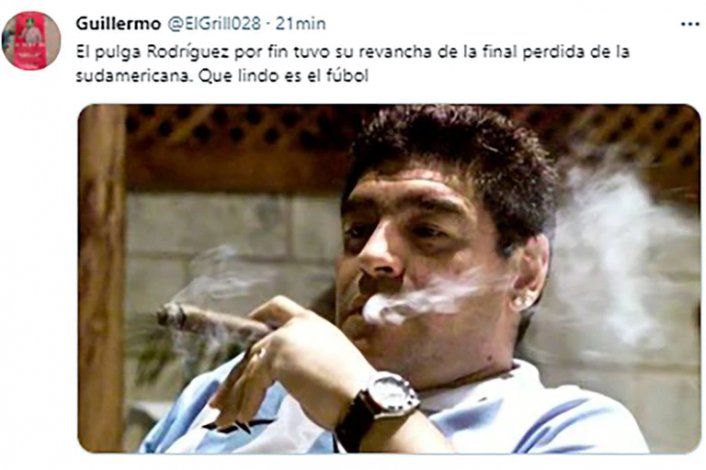 Luis Miguel El Pulga Rodríguez fue el gran foco de los chistes en Twitter. El gran referente de Colón, que debió salir de la cancha por una lesión cuando promediaba el segundo tiempo, prácticamente monopolizó las creaciones de los hinchas. Su festejo con un vaso grande de cerveza fue la imagen más compartida en las distintas cuentas y la que disparo los más desopilantes comentarios.